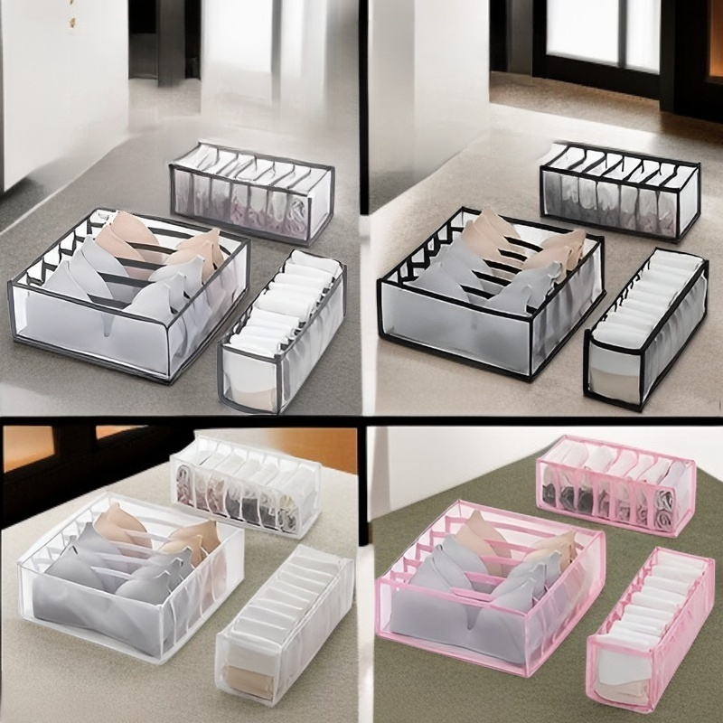 Annhua 3-teilige faltbare Aufbewahrungsbox für Unterwäsche mit Netzeinsätzen, Sockenbox, Schubladeneinsätzen, waschbar, formbeständig, platzsparend, rosa